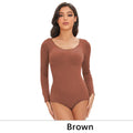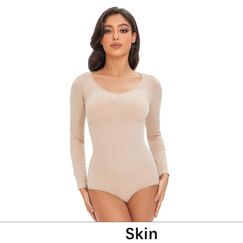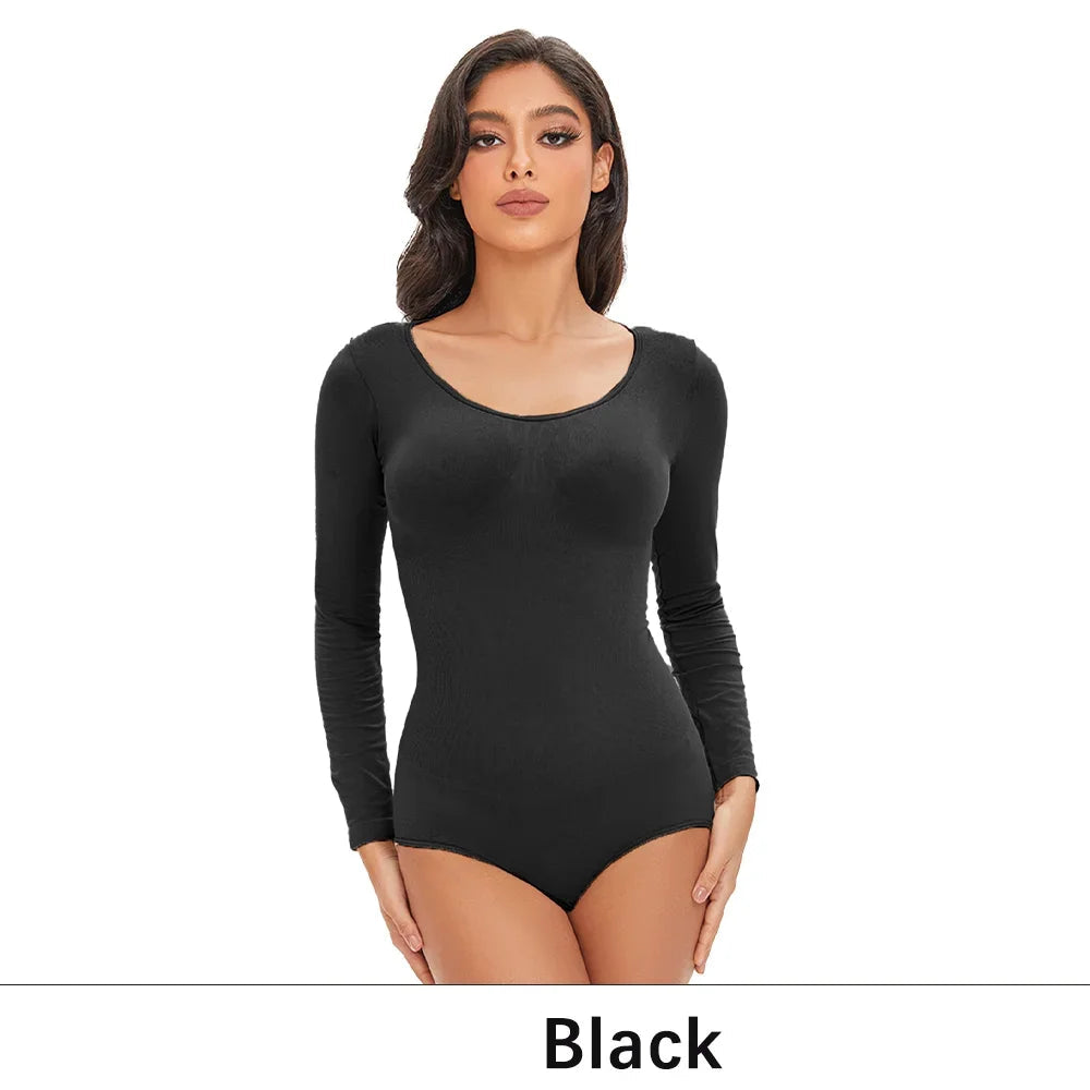 This long-sleeve bodysuit is a versatile wardrobe staple, perfect for layering or wearing on its own. Pair it with jeans, skirts, or knee-high boots for a stylish ensemble. The one-piece design not only shapes your waist and arms but also highlights your curves, offering a hip-lifting effect and slimming arm lines. Whether for casual outings or special occasions, this bodysuit combines style and functionality seamlessly.