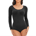 The Spandex Body Suit Shapewear is lightweight, silky, and ultra-soft. Its stretchy fabric provides a luxurious, second-skin sensation, ensuring all-day comfort. The scoop neckline and fitted long sleeves add a minimalist yet stylish touch, making it an effortless addition to any wardrobe.